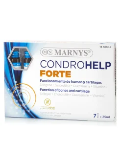 CONDROHELP FORTE din gama Marnys este un supliment complex de calitate premium sub forma de fiole buvabile. Formula este special conceputa pentru protejarea articulatiilor si a tesutului conjunctiv, mobilitate si reducerea inflamatiilor cauzate de afectiunile articulare degenerative, datorita unei combinatii exclusive de Colagen Hidrolizat, Condroitina, MSM, Glucozamina, Omega 3, Turmeric si urzica, cu multiple beneficii asupra intregului sistem osos. Produs in Spania la cele mai inalte standarde GMP.