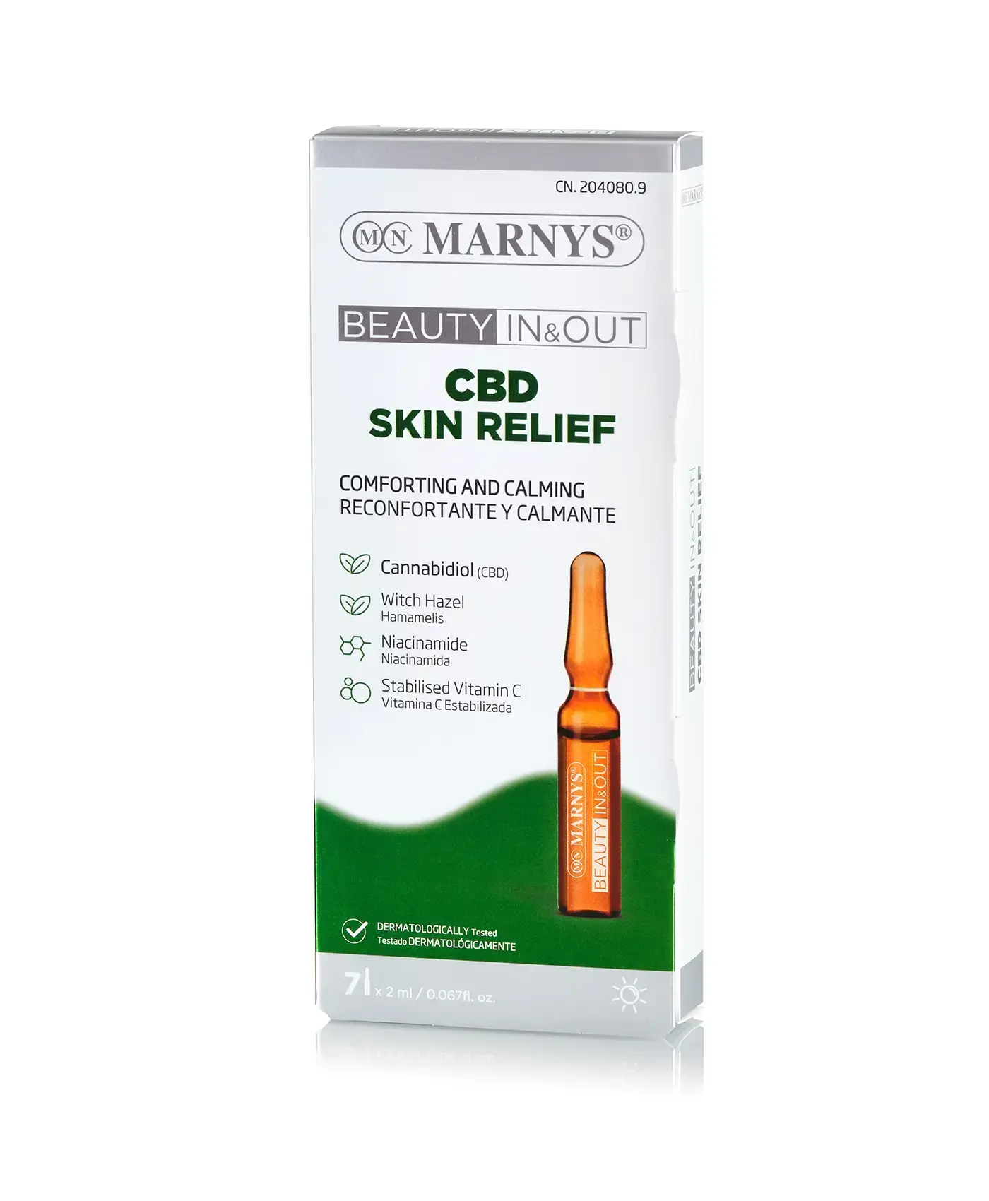 CBD SKIN RELIEF din gama MARNYS® Beauty In & Out este un supliment nutricosmetic de ultimă generație creat pentru a proteja pielea pielea iritată și cu tendințe atopice sau acneice. Produs în Spania la cele mai înalte standarde de calitate. Ajunge pentru 14 zile de tratament